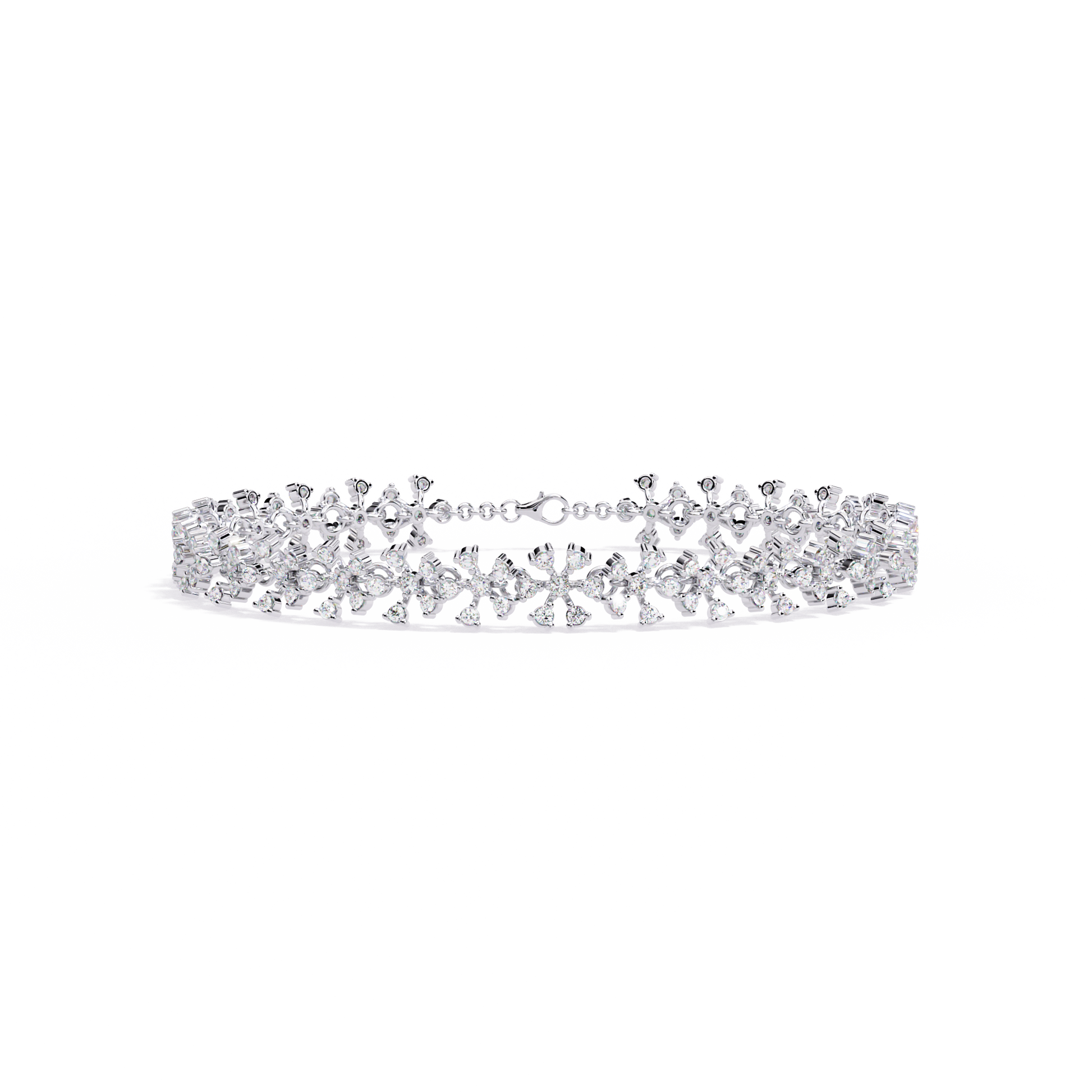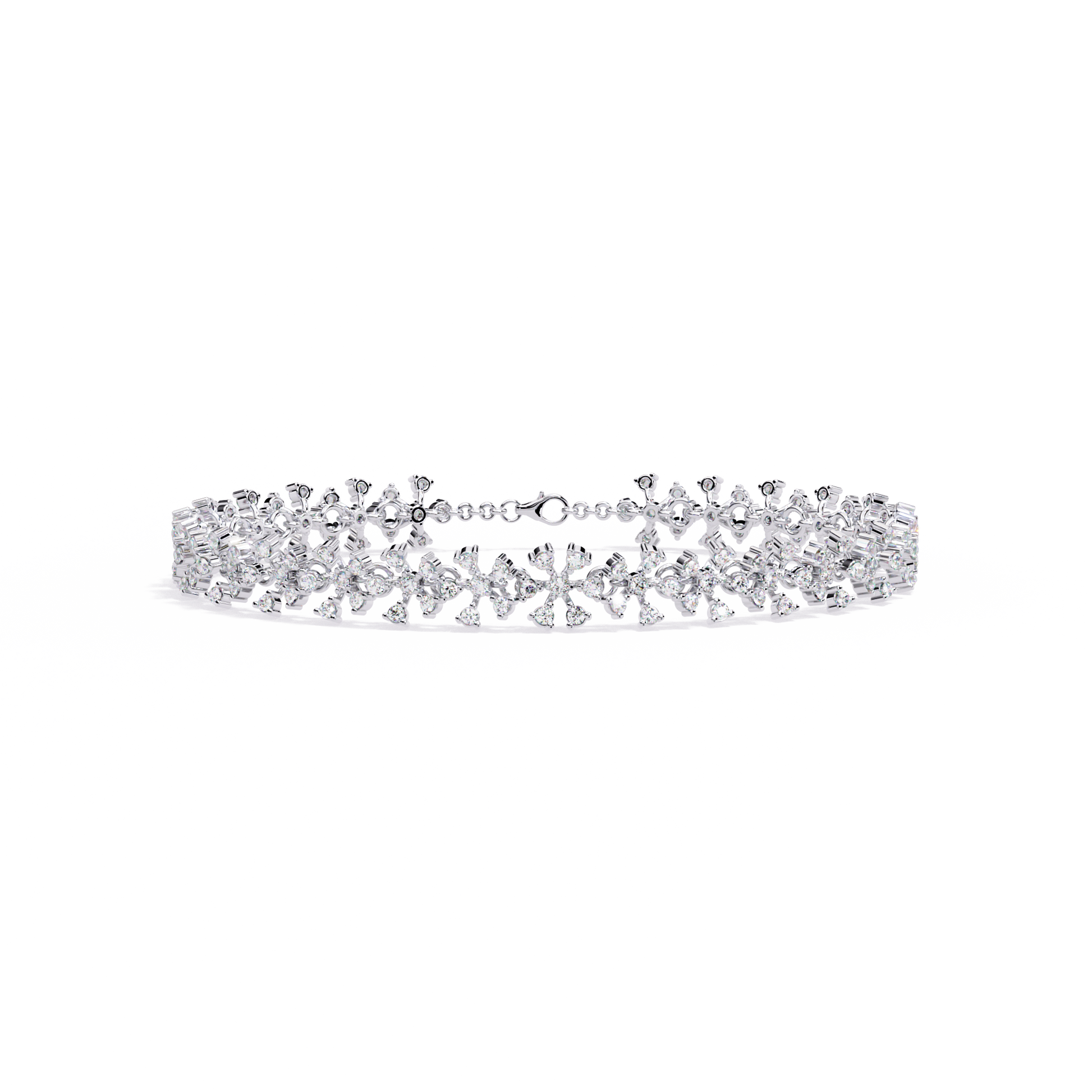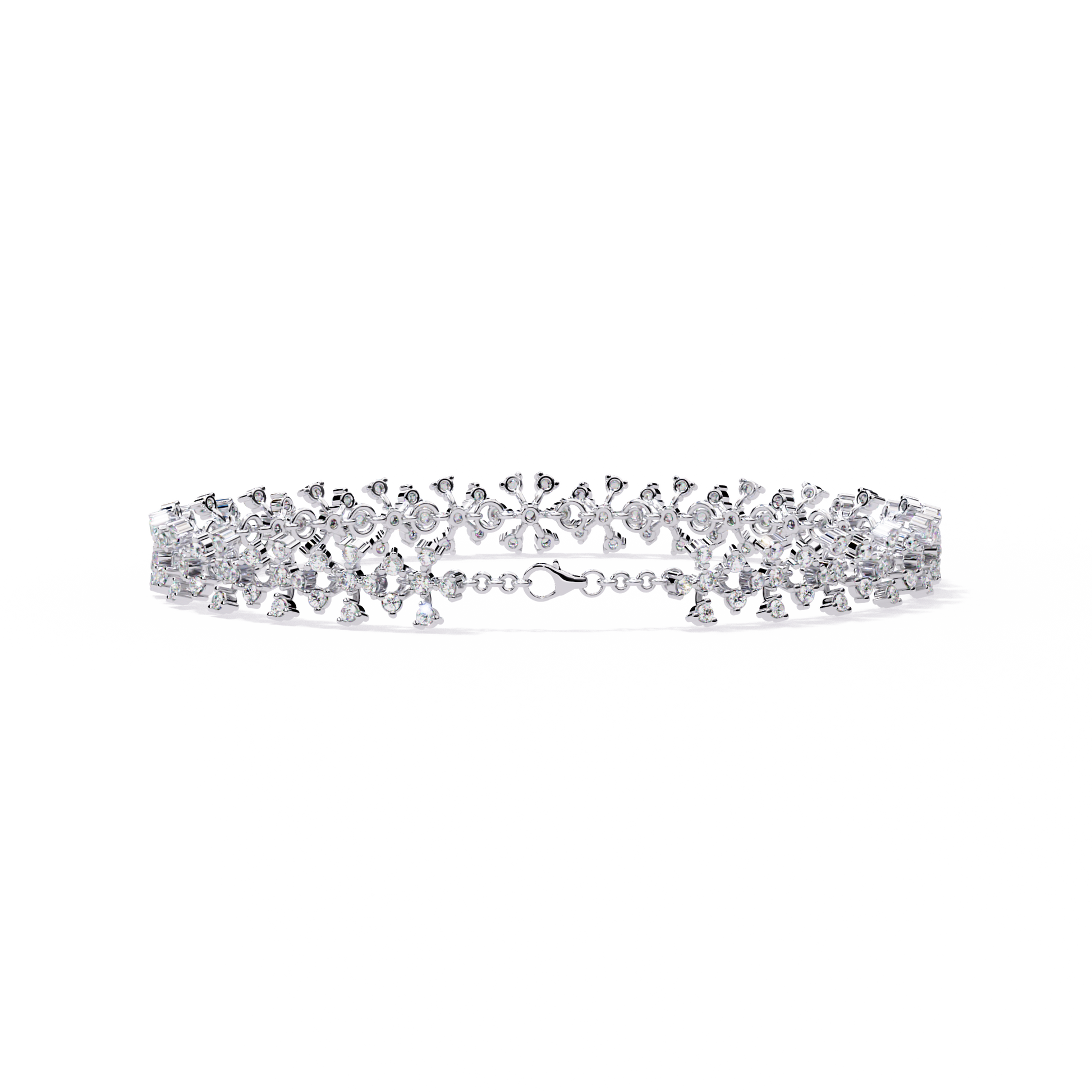 Celebrate timeless beauty with this antique-inspired flower14k solid white gold cluster tennis bracelet, delicately crafted for the modern bridal party. Each floral motif features top-grade 1.59Ct round-cut lab grown diamonds, intricately arranged in a shimmering cluster to create a graceful, vintage-inspired look.