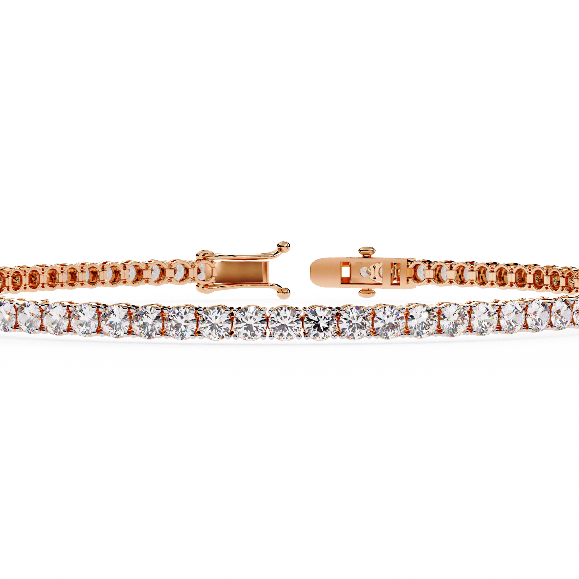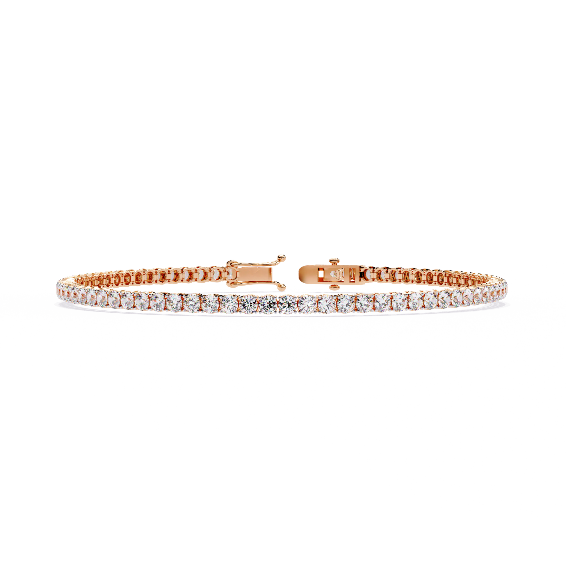 Minimalist yet timeless, this Round Cut Tennis10k Solid Rose Gold Bracelet features a harmonious blend of lab grown and natural diamonds. With its classic stackable design and dainty elegance, it’s the perfect party wear accessory and a thoughtful gift for your best friend.