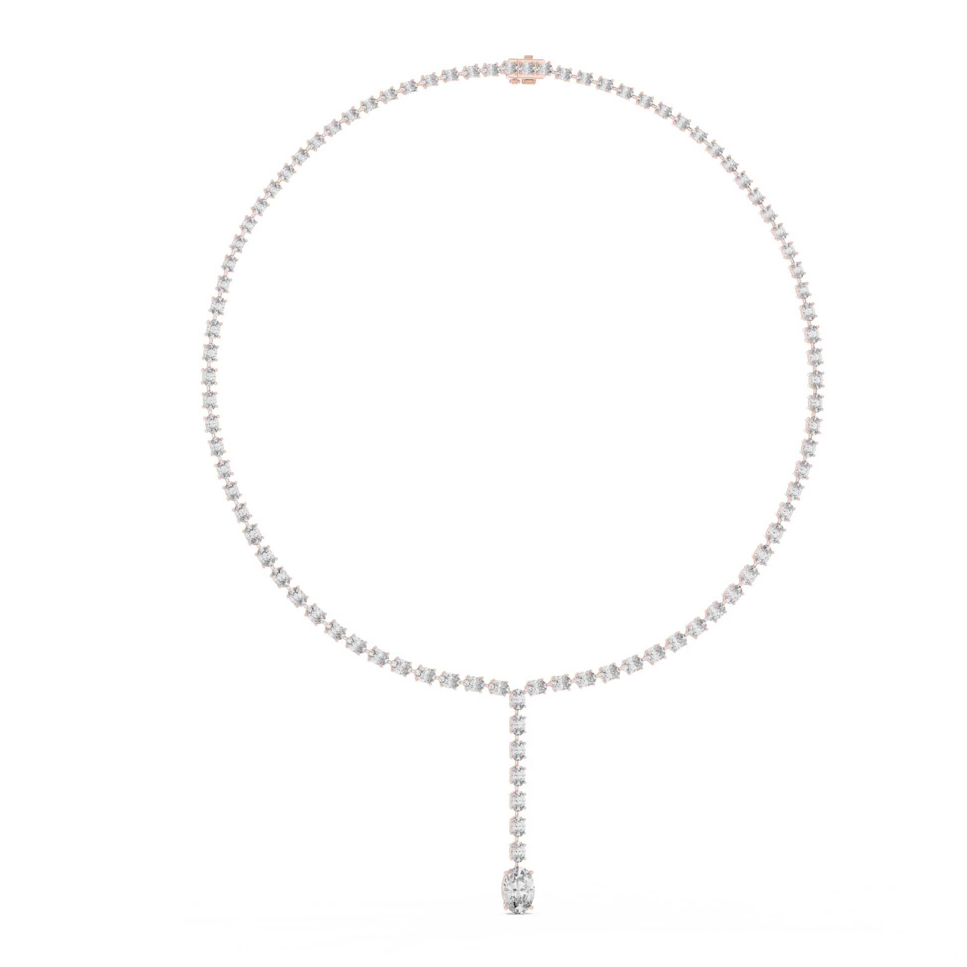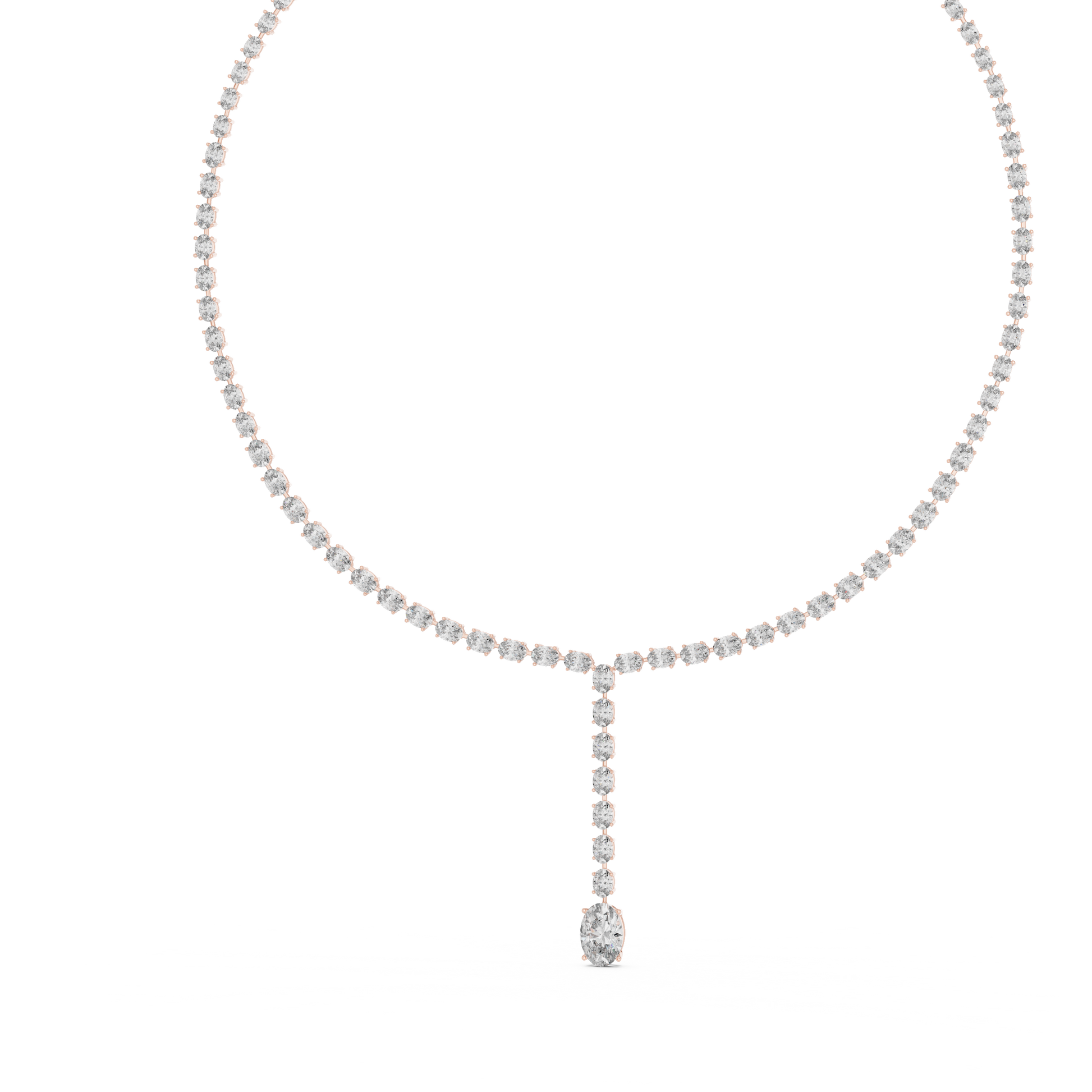 • Oval Shape Lab Grown 10k Solid Rose Gold Fabulous Unique Diamond Necklace For Birthday Gift