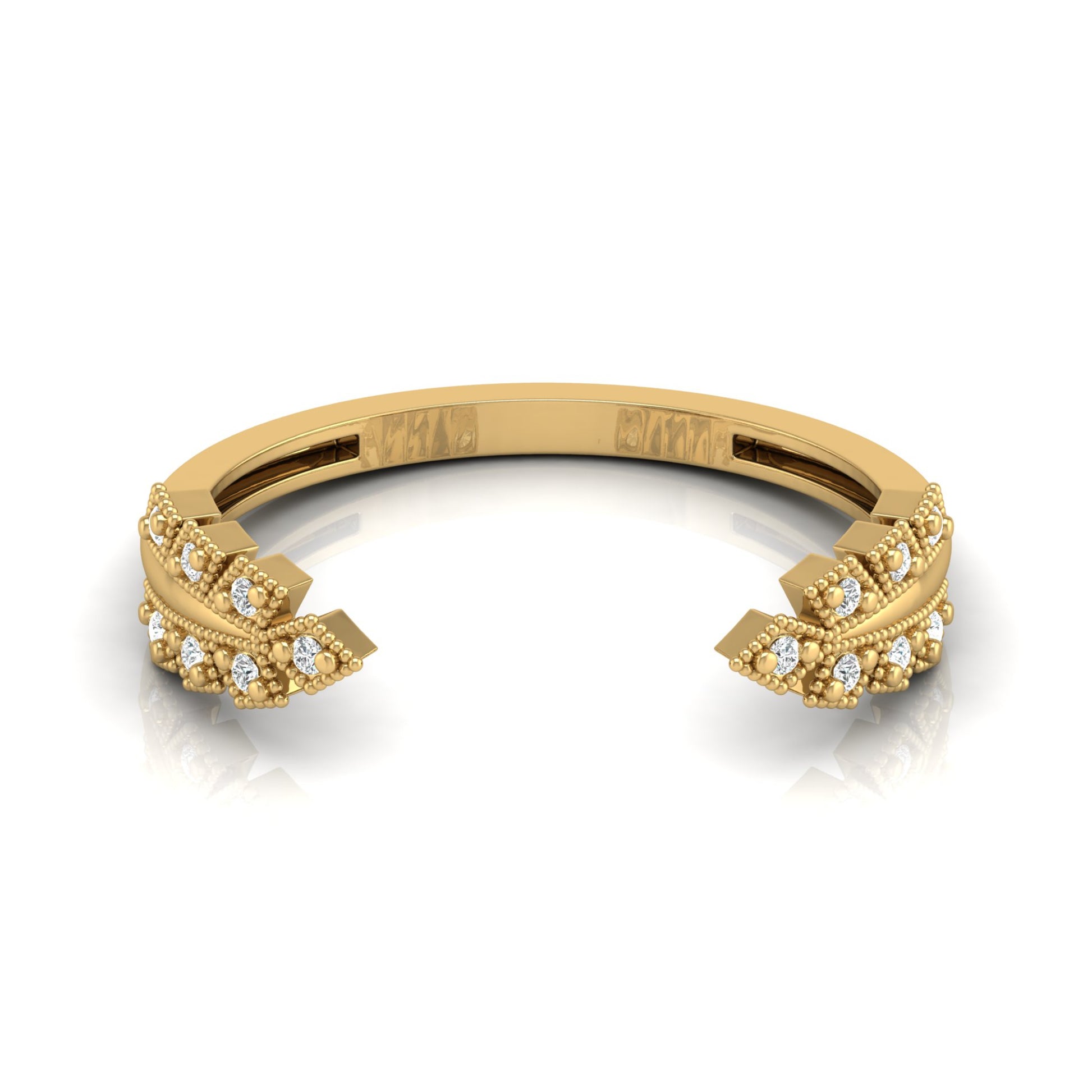 Affordable Open Cuff Band Ring with Round Diamond For Her In 18 KT Solid Gold