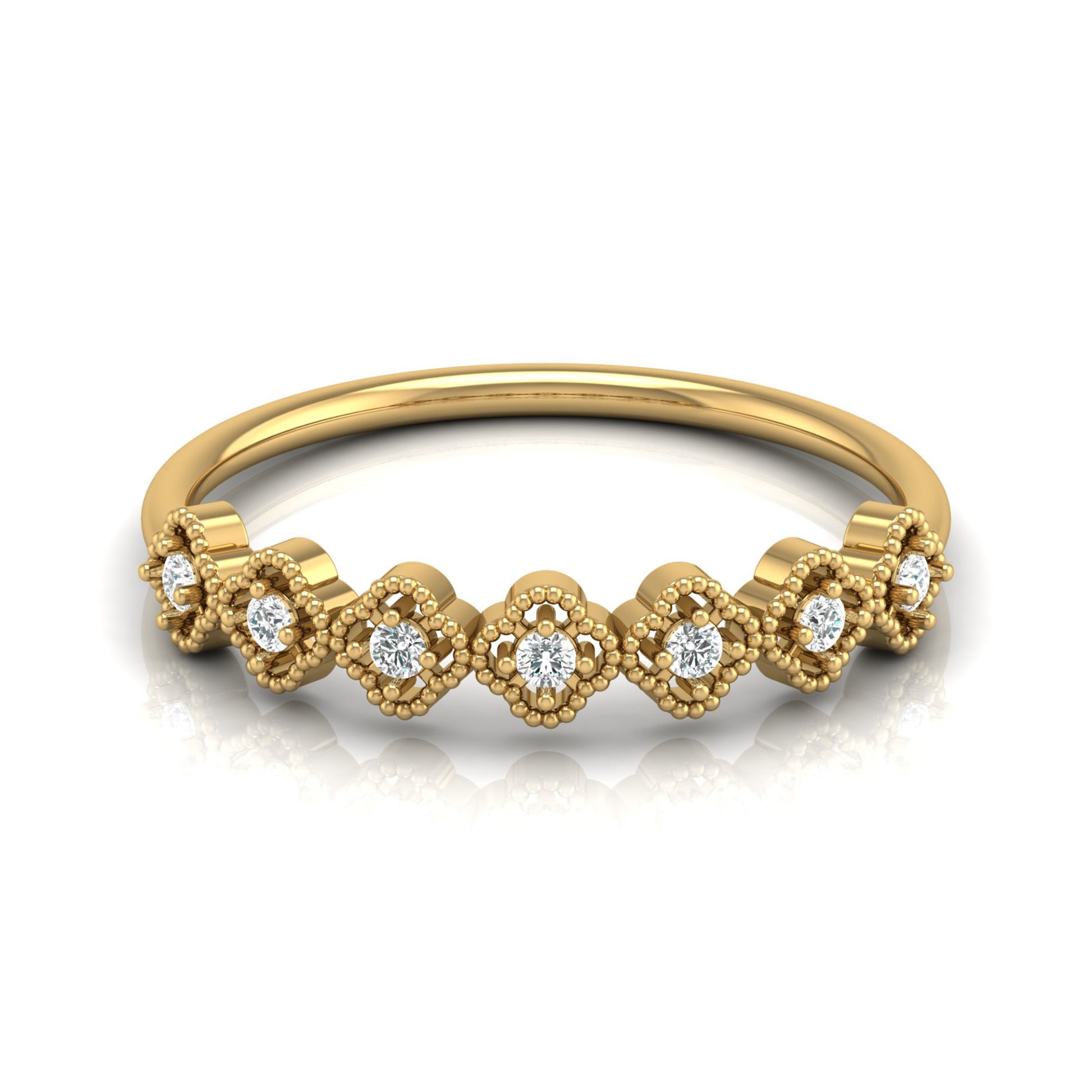 Floral Half Eternity Diamond Ring For Her Lab Or Natural Diamond Ring In 18K Solid Gold