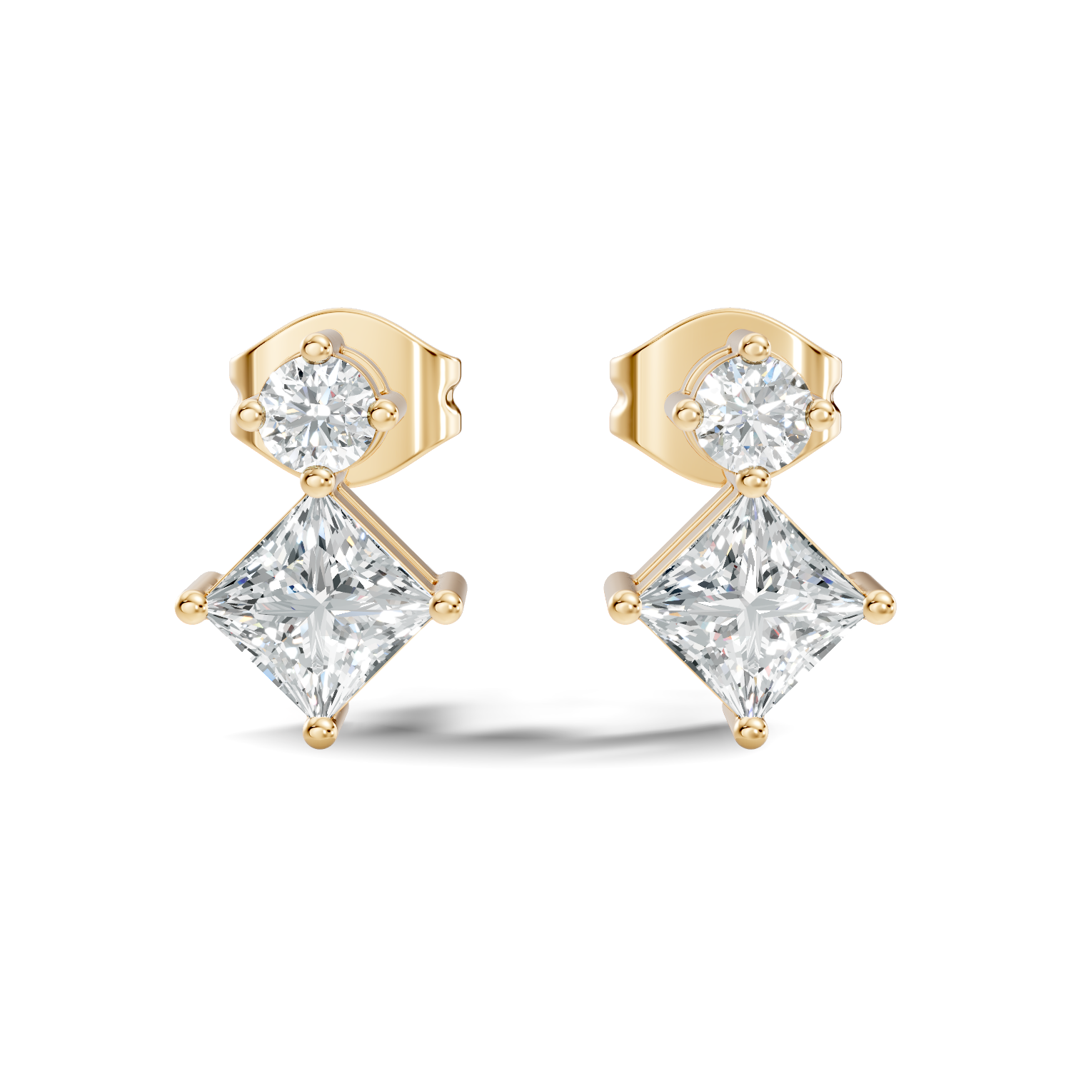 Princess & Round Shape Natural And Lab Grown Diamond 14k Solid Gold Classic Studs Diamond Earrings